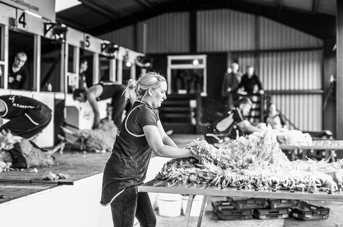 "There is a massive difference between what happens here and the wool we handle back home in Wales. At home, everything is shorn as full wool. Then we just take the dags out, slip both sides in, roll it up and make a hole to tuck the neck in. That's how you place it in the wool bags. It's a lot different to over here and not technical at all," she said.