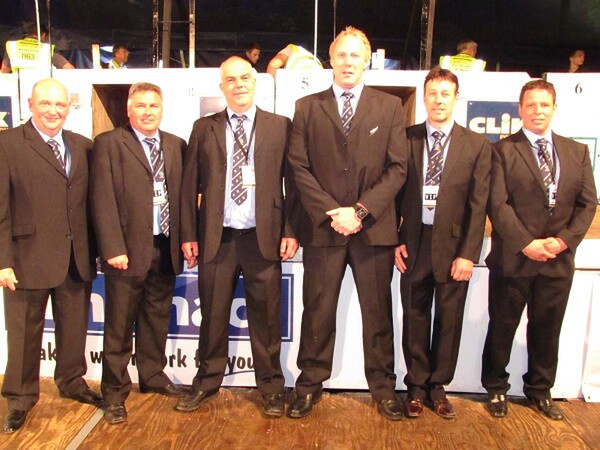 Norm Harraway (third from right) with his fellow commentators at the 2014 World Shearing and Woolhandling Championships in Gorey, Ireland.