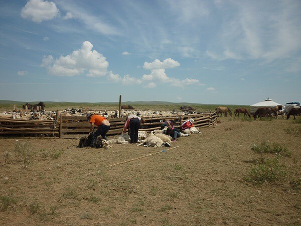 His family's herd consists of several hundred sheep and goats, along with their horses and cattle. Most herders would have at least a couple of hundred sheep, and generally each herder and their extended family will shear their own sheep.