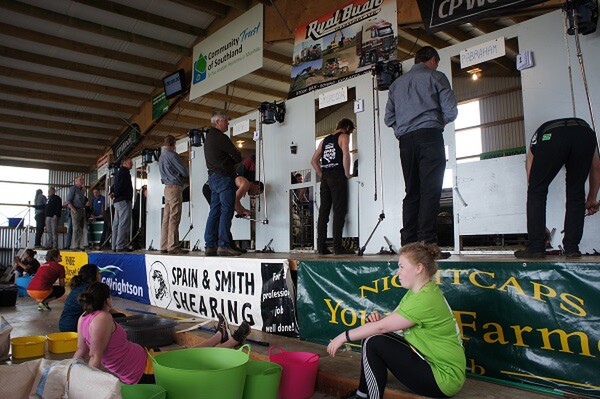 Open final (20 lambs): Nathan Stratford (Invercargill) 18min 52.28sec, 62.724pts, 1; Darrin Forde (Lornville) 19min 27.94sec, 67.197pts, 2; Dion Morrell (Alexandra) 19min 19.13sec, 67.2065pts, 3; Brett Roberts (Mataura) 19min 7.56sec, 67.428pts, 4; Casey Bailey (Riverton) 19min 23.5sec, 70.175pts, 5; Hamish Mitchell (Scotland) 18min 28.78sec, 70.439pts, 6.