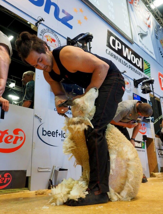 But, wait, there's more. Father John Kirkpatrick, a two-times World teams machine shearing champion is in the New Zealand team making a fourth bid for the elusive World Championships individual title, and husband Ricci Stevens, originally from Gisborne, is through to the All Nations Senior shearing final which will be shorn at the end of the third day tomorrow.